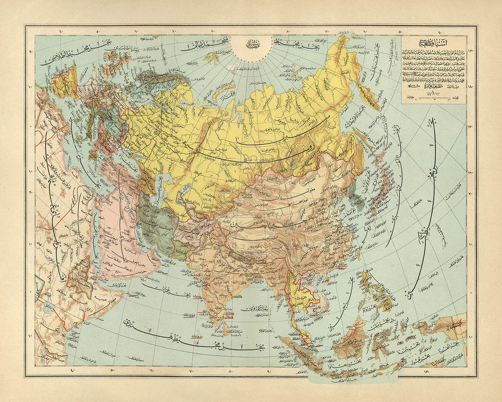 Old Ottoman Arabic Map of Asia by Eşref, 1893