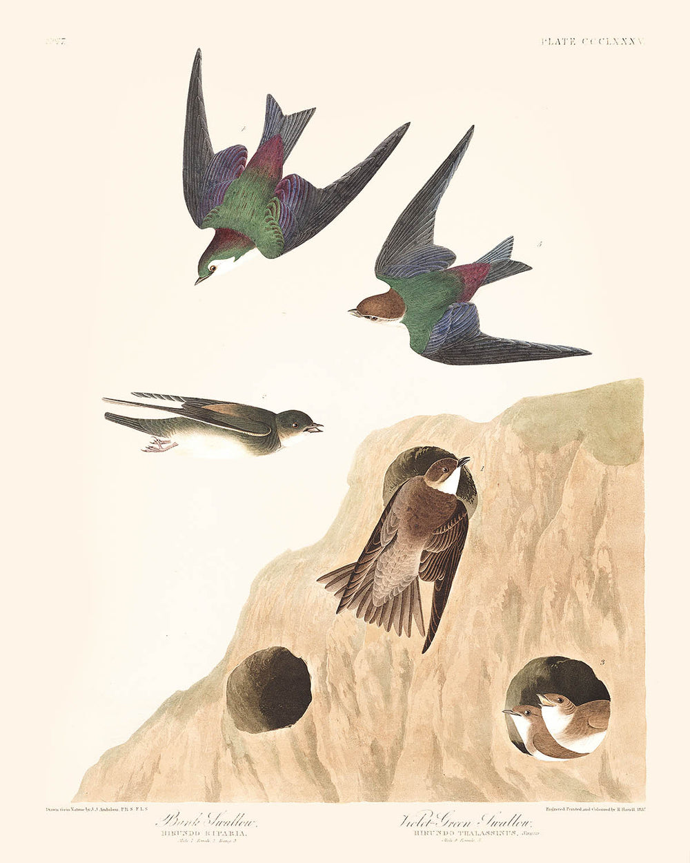 Bank-Schwalbe und Violettgrüne Schwalbe von John James Audubon, 1827