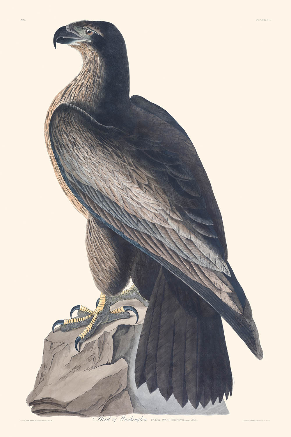 Der Vogel von Washington, erstmals 1827 veröffentlicht, ist eine fesselnde Illustration aus John James Audubons renommierter Serie, Die Vögel Amerikas. Diese Illustration, die nun zum ersten Mal seit Jahrhunderten verfügbar ist, fängt die Majestät dieses grandiosen Vogels mit akribischen Details und lebhaften Farben ein.