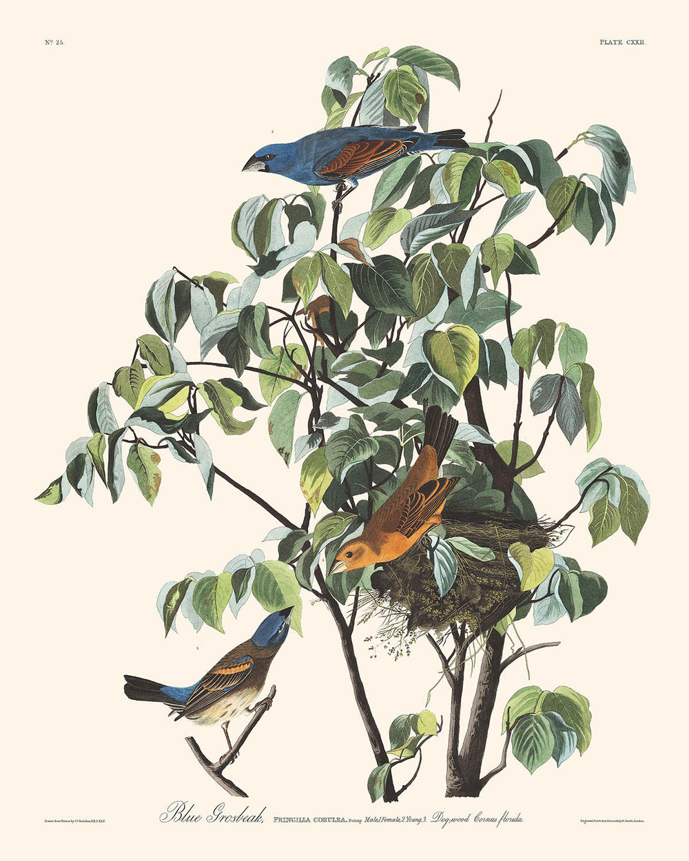 John James Audubon war ein produktiver Naturforscher und Maler, der für seine detaillierten und lebensechten Darstellungen amerikanischer Vögel bekannt ist. Sein Werk, Vögel von Amerika, wird für seine lebensgroßen Illustrationen und seine akribische Detailgenauigkeit gefeiert. Die Illustration des Blauhäher ist bemerkenswert für ihre lebendigen Farben und den komplexen Hintergrund, der den Vogel in seinem natürlichen Lebensraum mit beeindruckender Klarheit darstellt.