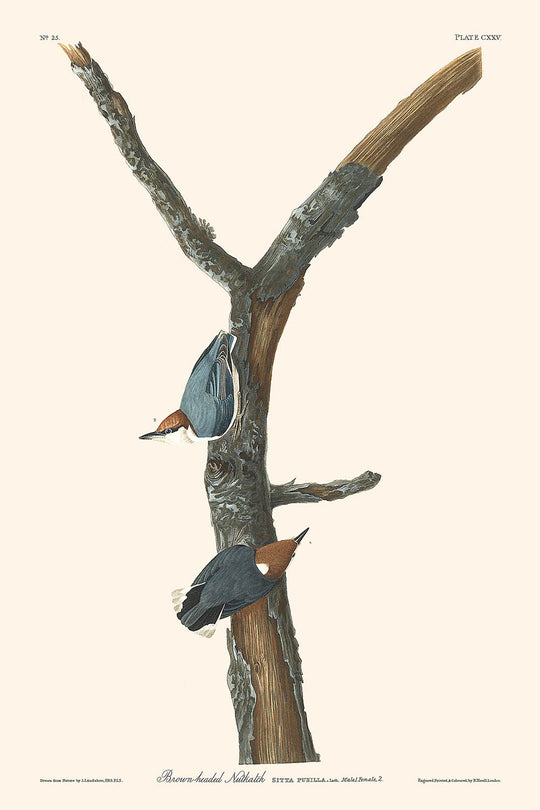 Der "Braunkopf-Waldsänger" (Tafel 125) ist eine exquisite Vogelillustration des renommierten Naturforschers und Künstlers John James Audubon. Dieses Kunstwerk ist Teil von Audubons gefeierter Serie "Vögel von Amerika", die ursprünglich 1827 veröffentlicht wurde. Der Druck fängt das lebhafte Wesen des Braunkopf-Waldsängers ein, eines Vogels, der für seine energetischen Bewegungen und charakteristischen Rufe bekannt ist und hauptsächlich in den Kiefernwäldern des südlichen Amerika vorkommt.