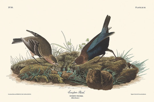 Die Illustration des Cowpen-Vogels ist nicht nur wegen ihrer ästhetischen Qualität bemerkenswert, sondern auch wegen der Geschichte, die sie erzählt. Audubon hat das faszinierende parasitäre Nistverhalten des Vogels, das dem des europäischen Kuckucks ähnelt, geschickt eingefangen und so die Aufmerksamkeit auf diese Vogelanomalie gelenkt. Dieser Druck ist ein Fenster in die Vergangenheit und zeigt das Verhalten und den Lebenszyklus eines Vogels, der mit dem breiteren ökologischen Gefüge verflochten ist.