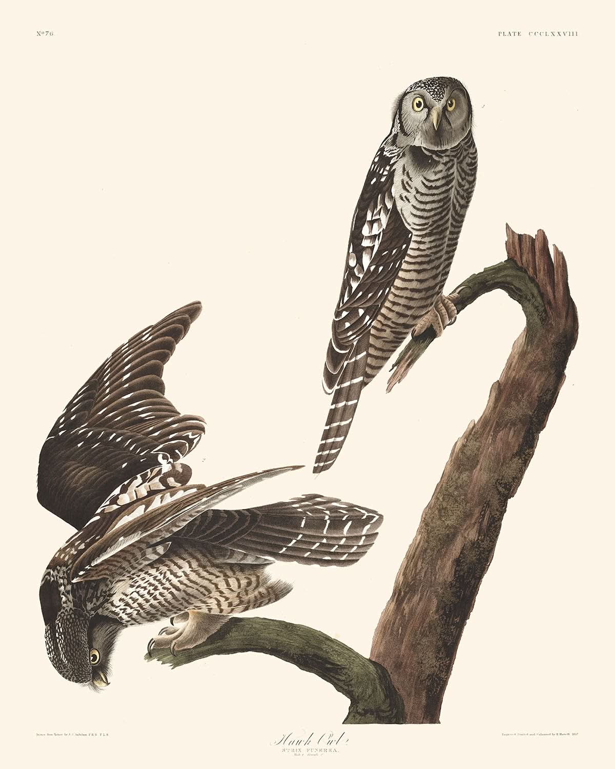 Dieser hochwertige Kunstdruck fängt das atemberaubende Wesen des Hawk Owl, wissenschaftlich bekannt als Strix funerea, ein. Der Druck wird sorgfältig auf dickem, archiviertem Mattpapier bei The Unique Maps Co. reproduziert und bietet Ihnen die Möglichkeit, ein Stück von Audubons zeitlosem Erbe zu besitzen, ohne die Lebendigkeit oder Detailtreue des Originalkunstwerks zu beeinträchtigen.