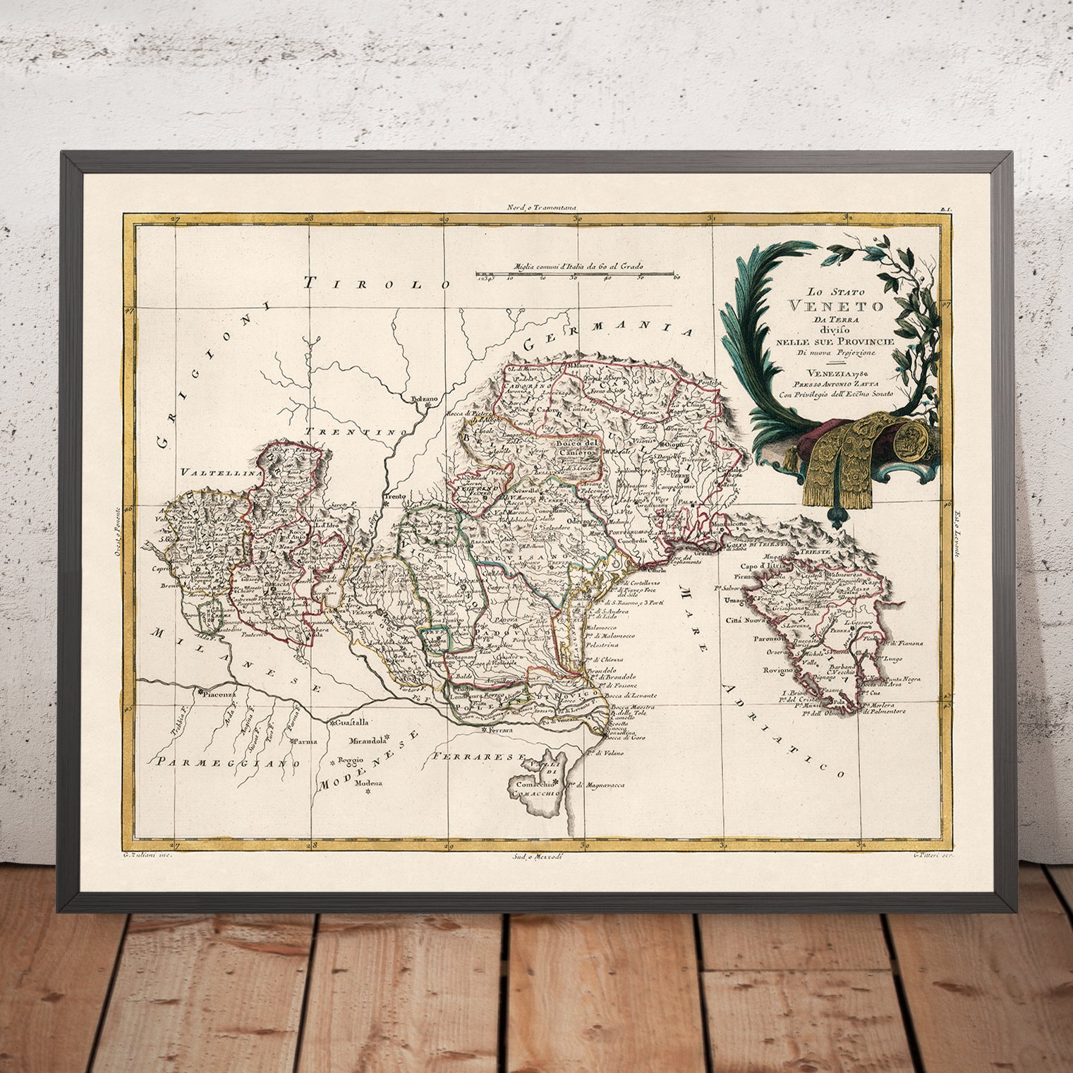 Old Map of Veneto, Italy by Zatta, 1782: Venice, Verona, Padua, Vicenza, Rovigo