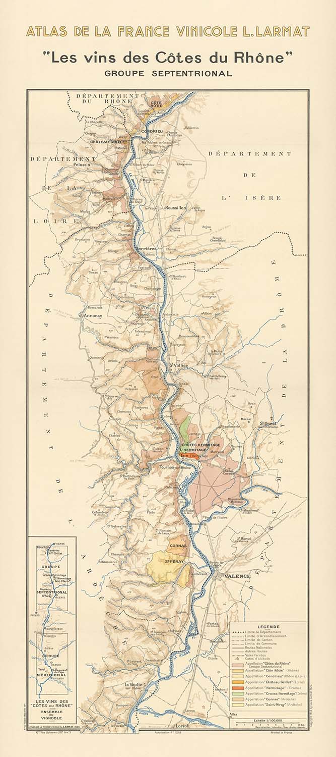 - Historische Bedeutung: Bietet Einblicke in die Weinkultur und Geografie der Rhône-Region in den 1940er Jahren und spiegelt historische Weinklassifikationen und territoriale Abgrenzungen wider.