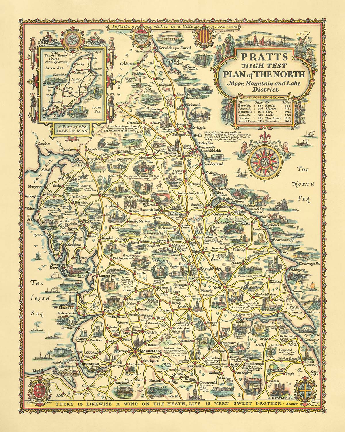 Pratts Karte von Nordengland von AE Taylor, 1932