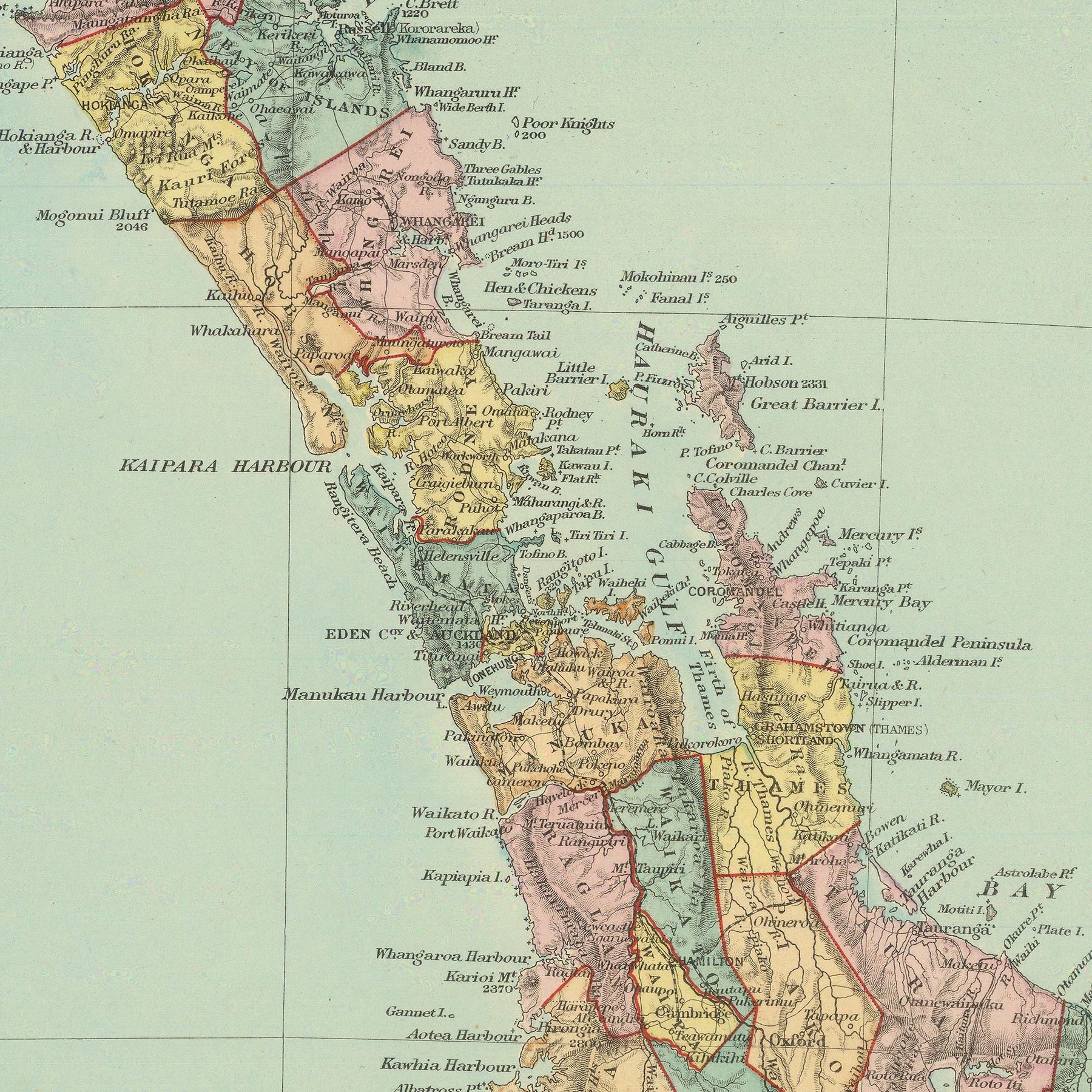 Die historische Bedeutung dieser Karte geht über ihre visuelle Anziehungskraft hinaus. Sie bietet wertvolle Einblicke in die politischen Grenzen und Siedlungen Neuseelands im Jahr 1887 und ist somit eine unverzichtbare Ressource für Historiker und Sammler. Ob als Kunstwerk ausgestellt oder für ihren historischen Kontext studiert, ist diese Karte eine bemerkenswerte Darstellung von Neuseelands Vergangenheit, die durch die geschickte Handwerkskunst von Edward Stanford zum Leben erweckt wird.