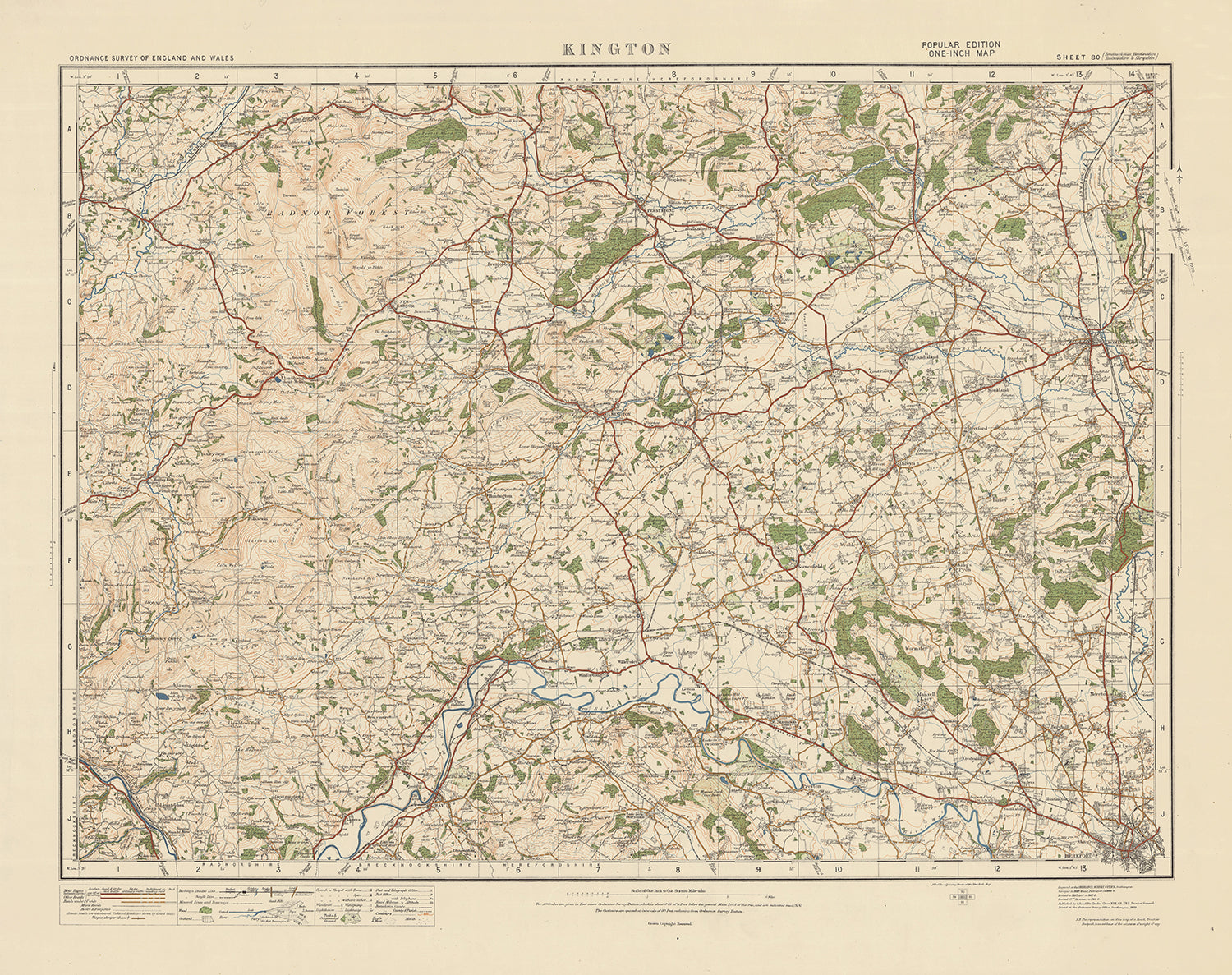 Alte Ordnance Survey-Karte, Blatt 80: Kington, 1925: Leominster, Hereford, Presteigne, Hay-on-Wye, New Radnor