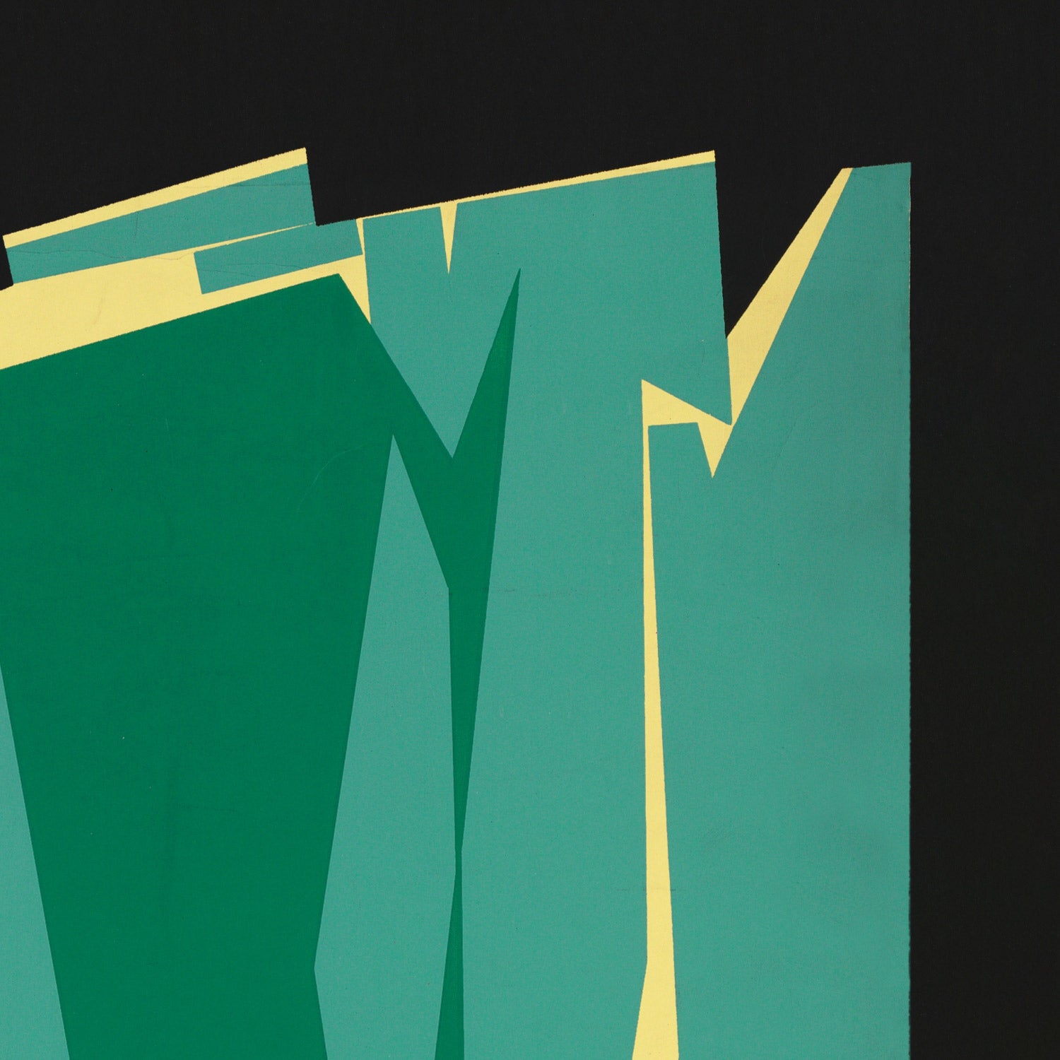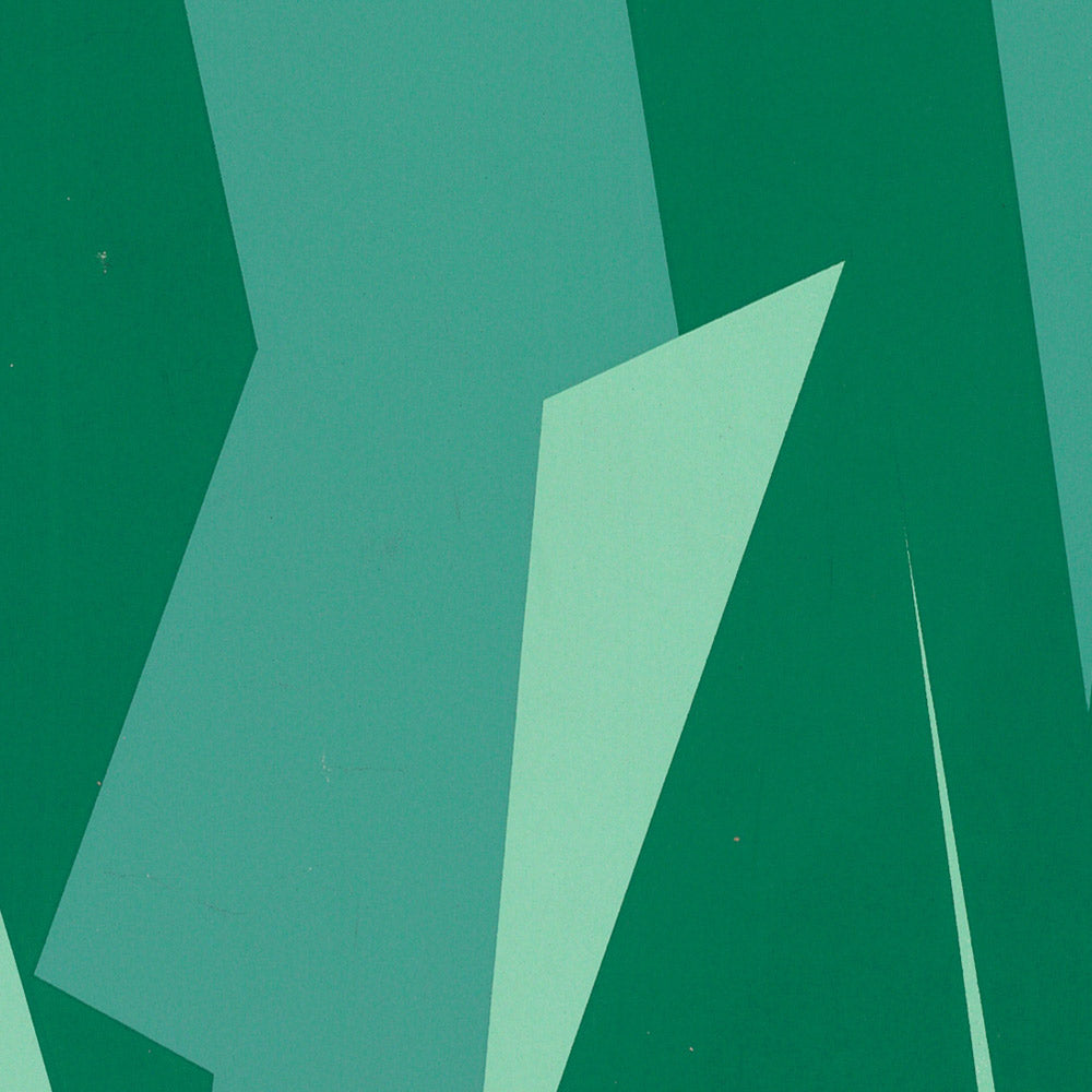 Design lovers will appreciate the poster’s confident palette and clear, modern lines. Dominant greens and aquas evoke spruce slopes and glacial facets; warm yellow lettering lifts off the cool background; and the judicious use of red—visible in the lower text and emblem—adds a spirited flourish. The richly layered blues in the glacier are rendered in broad, simplified planes that read beautifully at a distance yet reward close inspection, making this a standout focal point from entryway to living room.