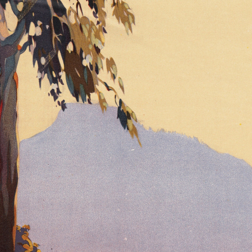 James Northfield (1887–1973) was a Melbourne-based commercial artist and one of Australia’s foremost poster designers between the wars. Trained in lithography, he built a reputation for luminous color, confident draftsmanship, and elegantly balanced compositions, producing posters for railways, resorts, and national tourism campaigns. His work helped define how Australia presented itself to the world in the 1930s—sunlit, sophisticated, and irresistibly inviting.