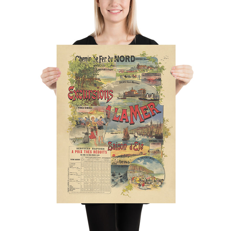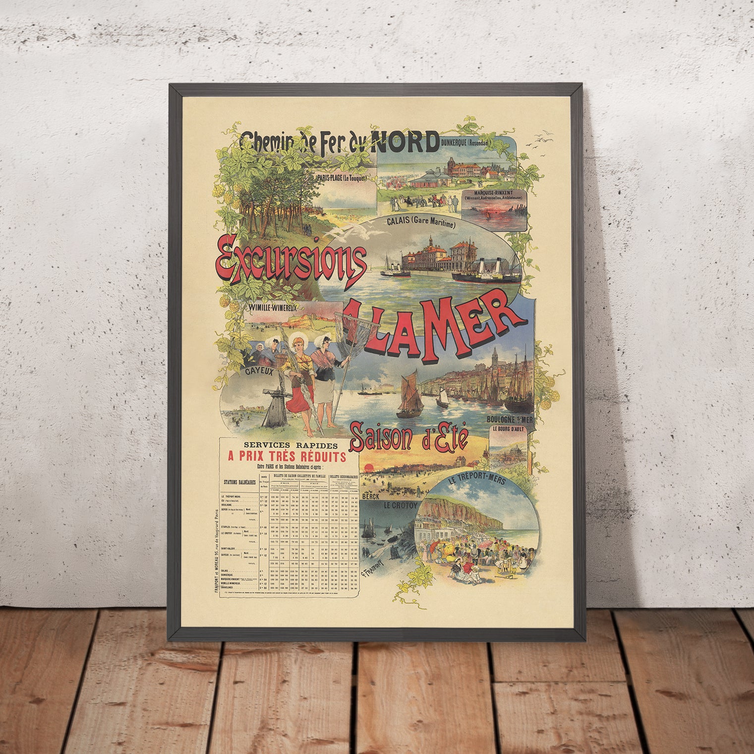 Northern France Travel Poster: Excursions à la mer by Gustave Fraipont, 1891