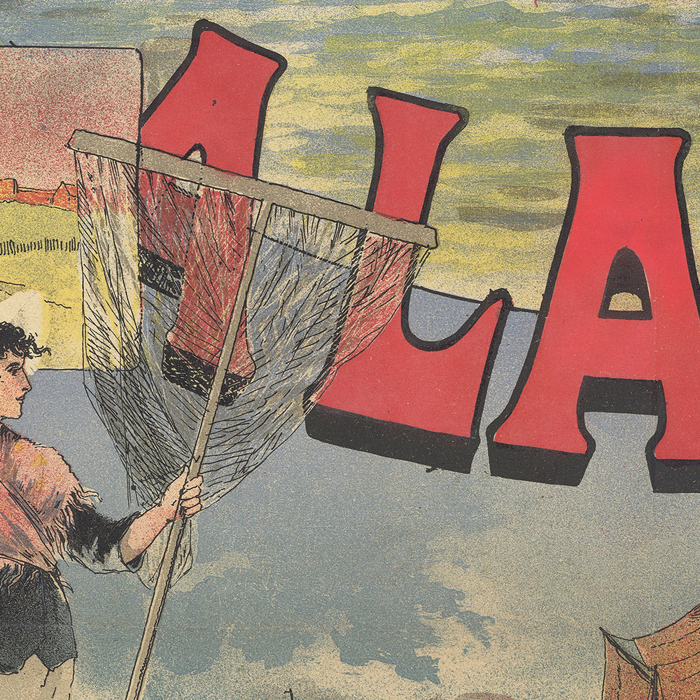 This 1891 design captures the romance of the Nord railway’s seaside excursions—to places like Boulogne‑sur‑Mer, Calais, and Dunkerque—at a time when rail travel opened the shore to a new generation of leisure seekers. The poster’s promise of “services rapides à prix très réduits” distilled the spirit of the age: accessible escape, a breath of sea air, and the modern thrill of speed. Even today, the typography and layout feel purposeful and clear, the railway’s message legible at a glance.