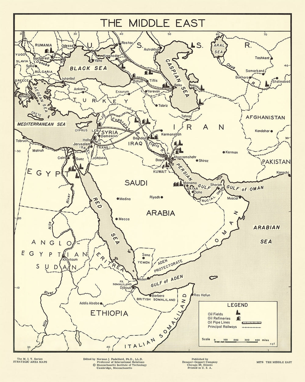 - Eine der frühesten amerikanischen Karten, die sich speziell auf die Ölindustrie im Nahen Osten konzentriert
