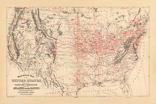 Alte Eisenbahnkarte der Vereinigten Staaten von Samuel Mitchell, 1890: Atlantic-zu-Pazifik-Eisenbahndiagramm