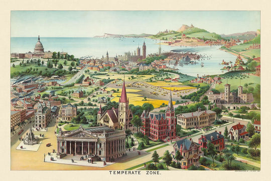 Dieses besondere Angebot ist ein hochwertiger Kunstdruck von „Temperate Zone“, der die Essenz und Brillanz der originalen antiken Farblithografie einfängt. Die Unique Maps Co. bringt dieses historische Kunstwerk zu Ihnen nach Hause mit der Option zur Restaurierung und Personalisierung, um eine maßgeschneiderte Anpassung an Ihre Sammlung zu gewährleisten.