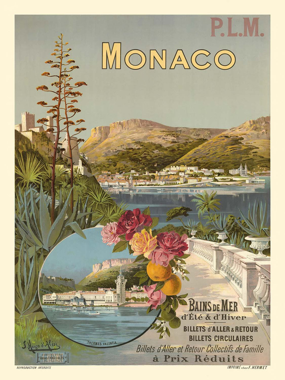 Monaco Travel Poster: Bains de mer d’Été & d’Hiver by Frédéric Hugo d’Alési, 1896