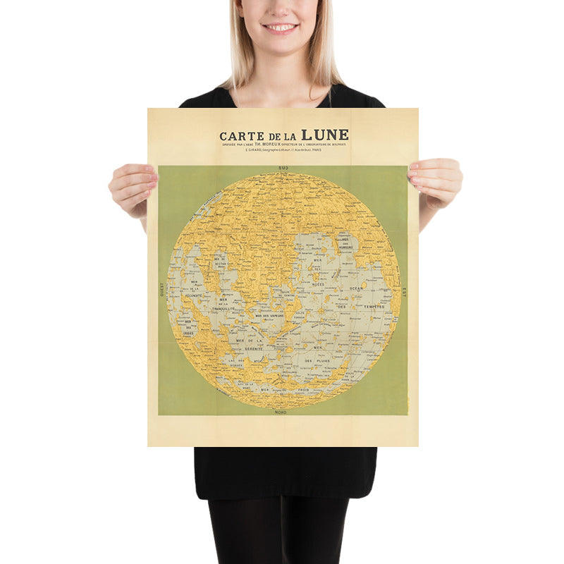 As a scientific tool and cultural artifact, Moreux’s Moon compresses an era’s knowledge with rare clarity. Created on the cusp of space exploration, it captures the best of Earth-based astronomy just before spacecraft redefined the possible. Its disciplined use of color-coding and contour foreshadows later photogrammetric relief maps, while its lucid labeling sustains lasting pedagogical value. Moreux’s legacy—honored by an asteroid and a Martian crater bearing his name—resonates in this work: a map that invites contemplation as much as consultation. It is a portrait of the Moon and of an astronomer’s mind at once—precise, speculative, and irresistibly illuminating.
