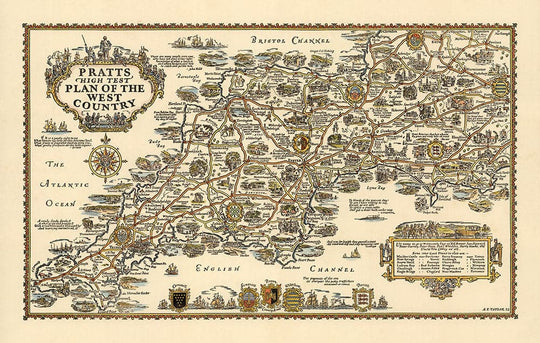 Pratts Plan des West Country, 1932 von A.E. Taylor: Somerset, Dorset, Devon, Cornwall