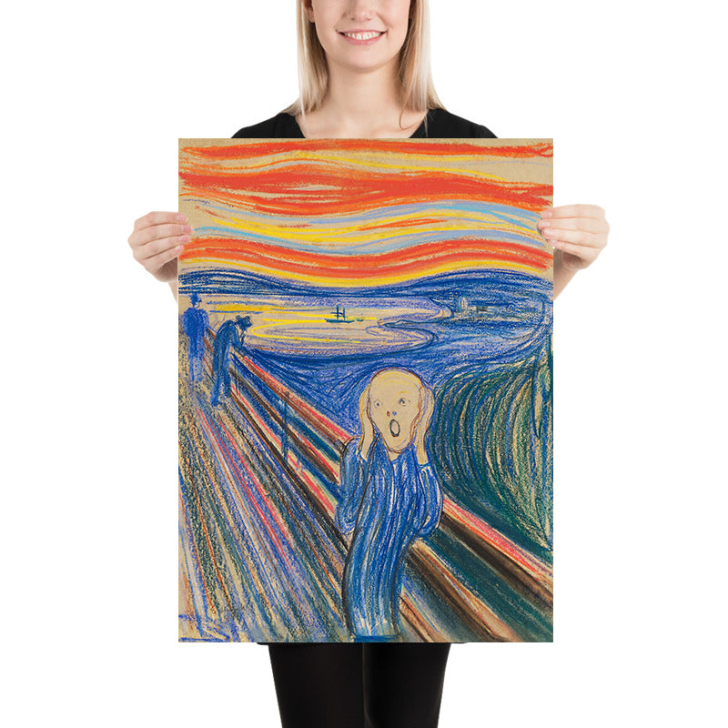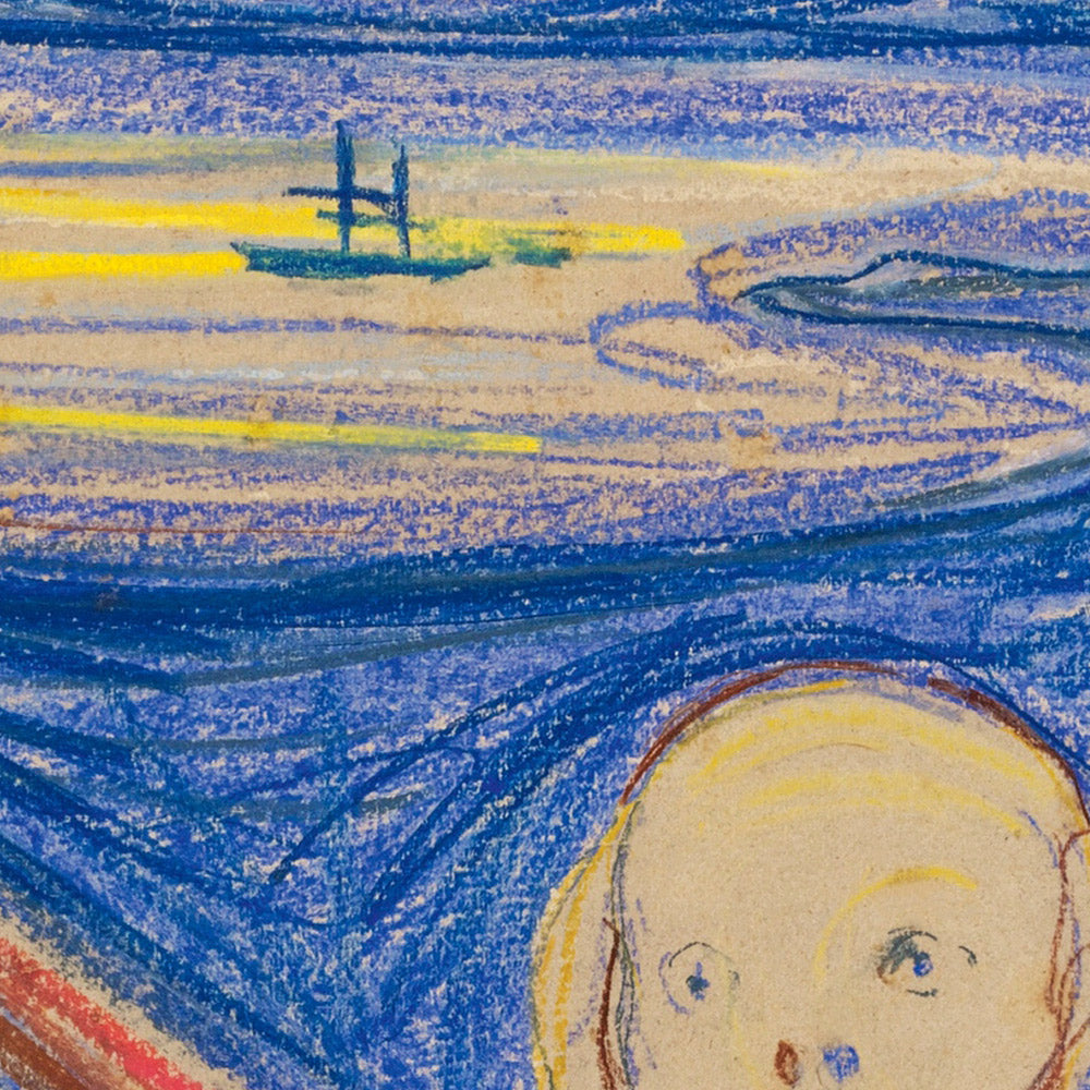 The Scream endures because it gives iconic form to late‑19th‑century anxieties: the disorientations of modern life, the press of the city, the tremor of uncertainty at the century’s end. Within the Frieze of Life, it stands as a pure emblem of angst. Of the four versions Munch realized, the 1895 pastel—on which this print is based—has long been renowned, historically the only one in private hands while the others reside in Norwegian museums, a testament to its singular importance and international stature.