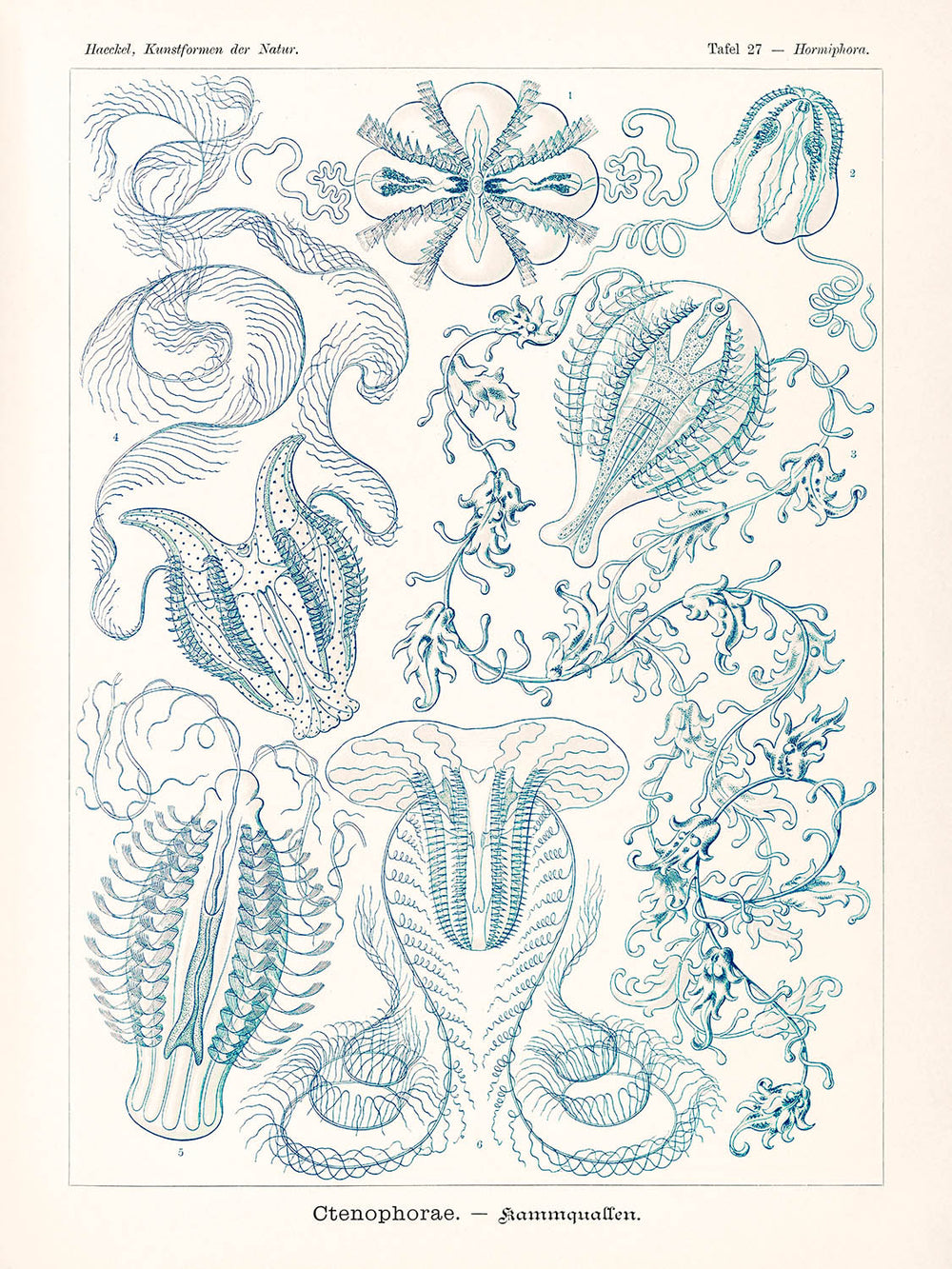 Medusas de peine (Ctenophorae Kammquallen) de Ernst Haeckel, 1904