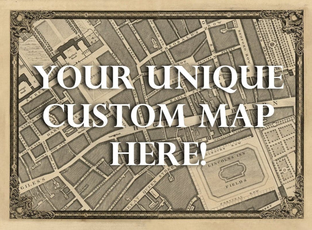 Obtengo mapas originales y raros de bibliotecas, casas de subastas y colecciones privadas de todo el mundo, los restauro en mi taller de Londres y luego uso tintas e impresoras giclée especializadas para crear hermosos mapas que lucen incluso mejor que el original.
