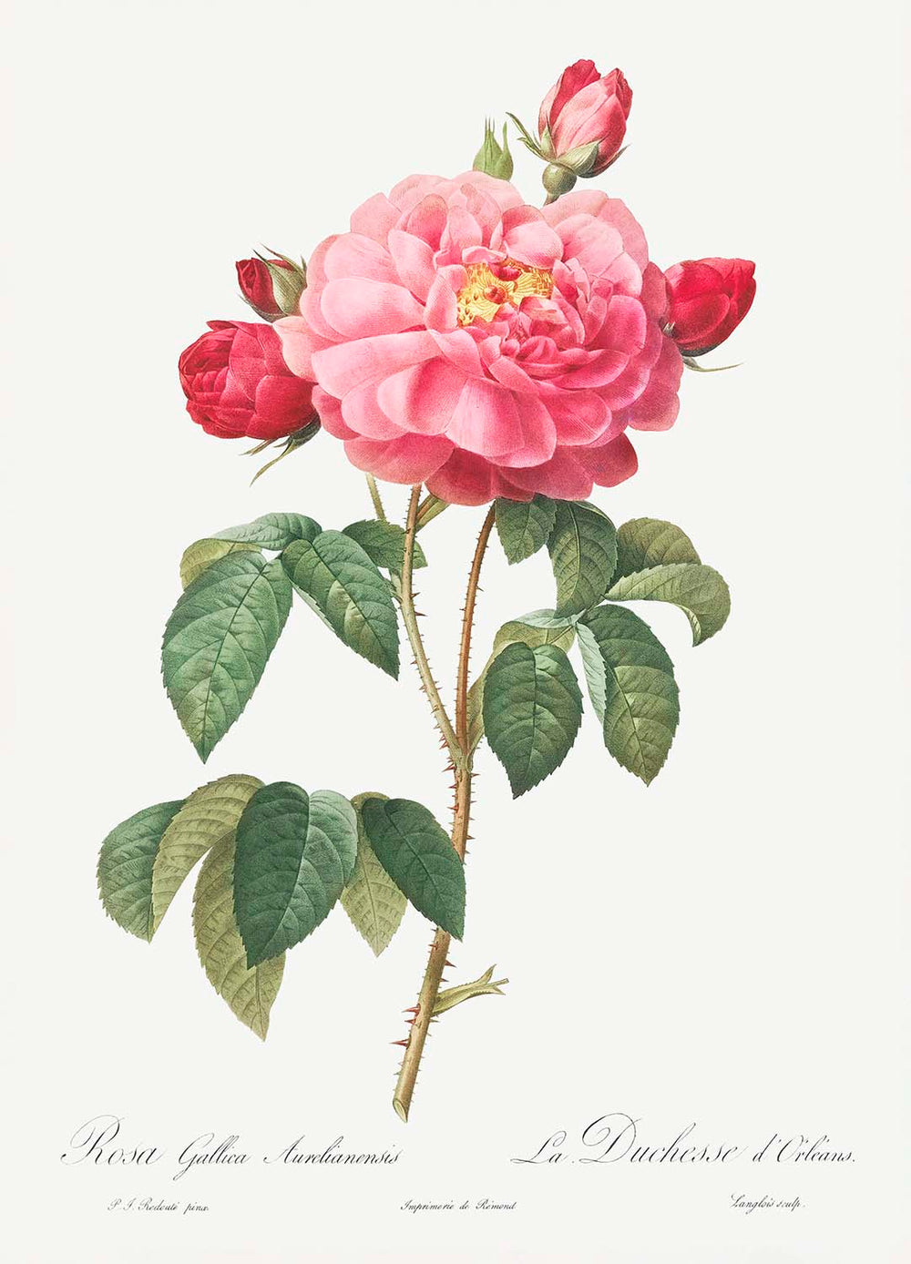 Ilustración botánica de la rosa gala de Pierre-Joseph Redouté, 1817