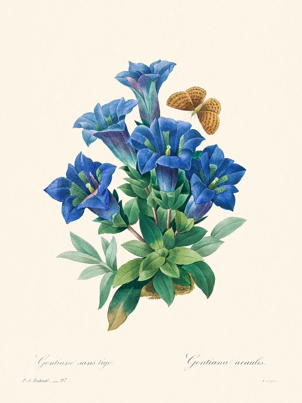 Gentiana Acaulis por Pierre-Joseph Redouté, 1802