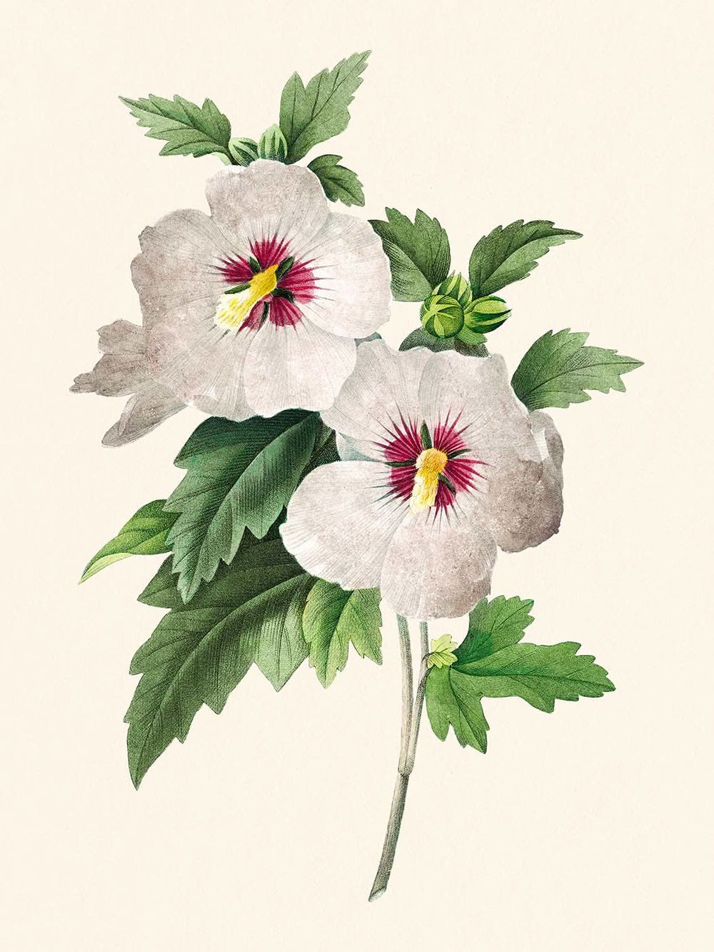 Hibiscus, que cobró vida por primera vez en 1827, es un vibrante testimonio de la exquisita habilidad de Pierre-Joseph Redouté, uno de los ilustradores botánicos más famosos de todos los tiempos. Redouté dedicó gran parte de su trayectoria artística a capturar la exuberante flora del castillo de Malmaison, por encargo de la ilustre Josefina Bonaparte, esposa de Napoleón. Su carrera dio un giro destacado como tutor de María Antonieta, lo que finalmente lo llevó a su prolífica creación de más de 2100 pinturas botánicas que inmortalizan más de 1800 especies de plantas.