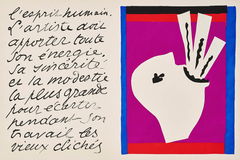 Henri Matisse, una figura célebre en el arte moderno, creó "L’avaleur de sabres" en 1947. Esta impactante obra de arte visual captura el enfoque innovador de Matisse hacia el Fauvismo y el movimiento Expresionista. Reconocido por su audaz uso del color y líneas fluidas, Matisse da vida a la cautivadora escena de un tragasables, un tema impregnado de intriga y dinamismo.