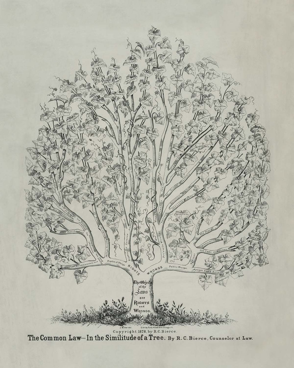 Cartel de la Oficina Legal, 1878: El Derecho Común como un Árbol por RC Bierce, 1878