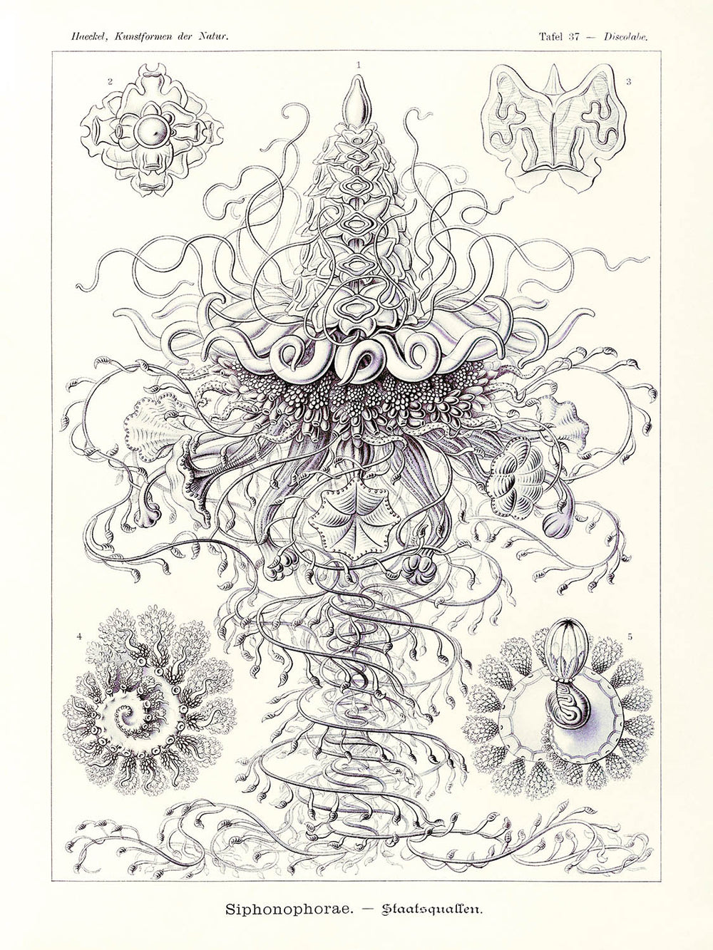 Muchas Medusas Tentaculadas (Siphonophorae Staatsquallen) de Ernst Haeckel, 1904