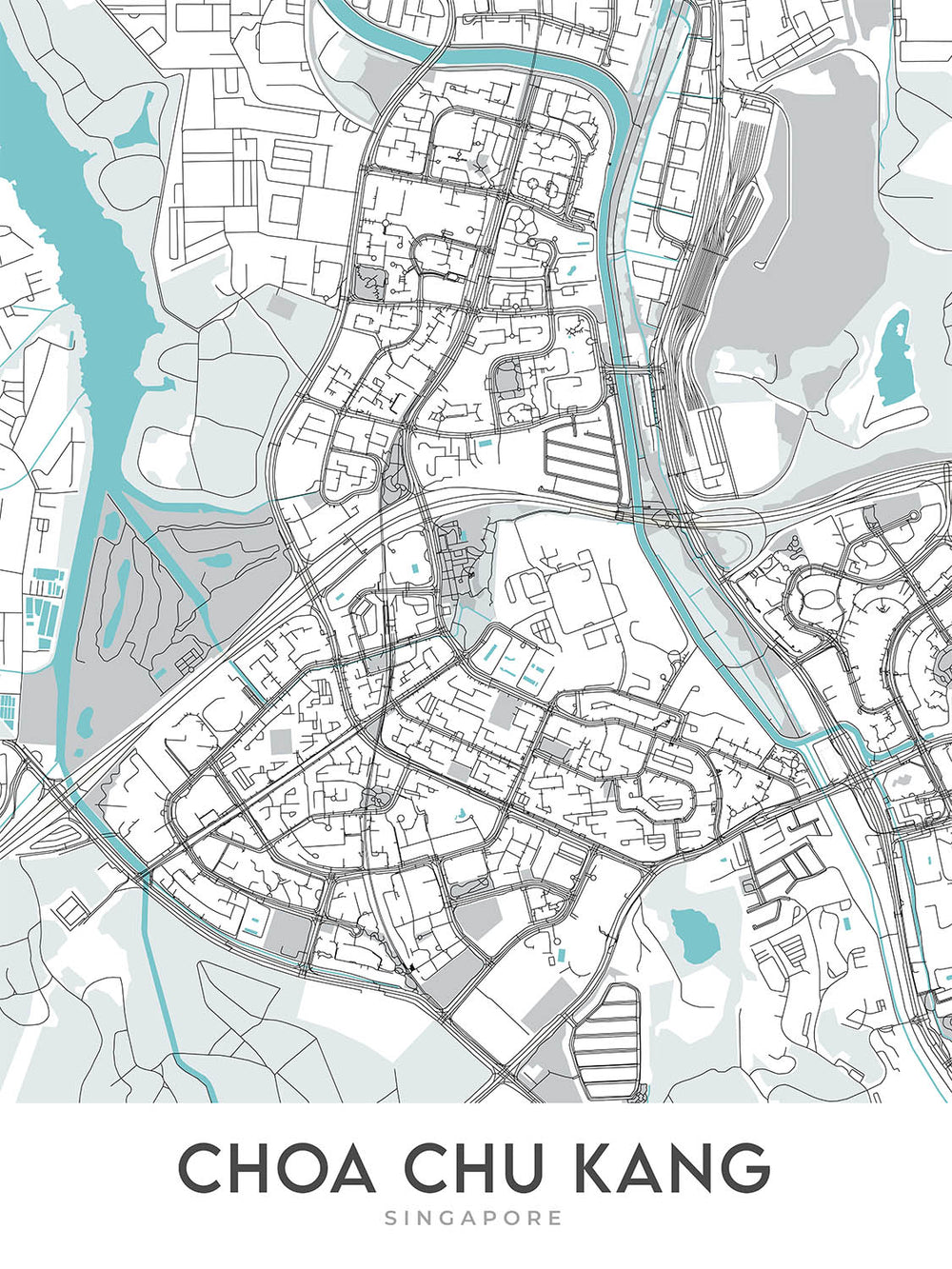 La incorporación de este mapa a la decoración del hogar no solo agrega una capa de sofisticación urbana, sino que también sirve para iniciar una conversación, ofreciendo historias de un vecindario muy querido articuladas a través del lenguaje de la creación de mapas modernos. Es una intersección innovadora de arte y geografía, donde cada cambio de línea y color cuenta una historia de comunidad, conectividad y estética urbana. Ideal para quienes valoran la precisión y el estilo, este mapa es un tributo tanto al legado como al encanto contemporáneo de Choa Chu Kang, capturado a través de la lente del ojo de un diseñador.