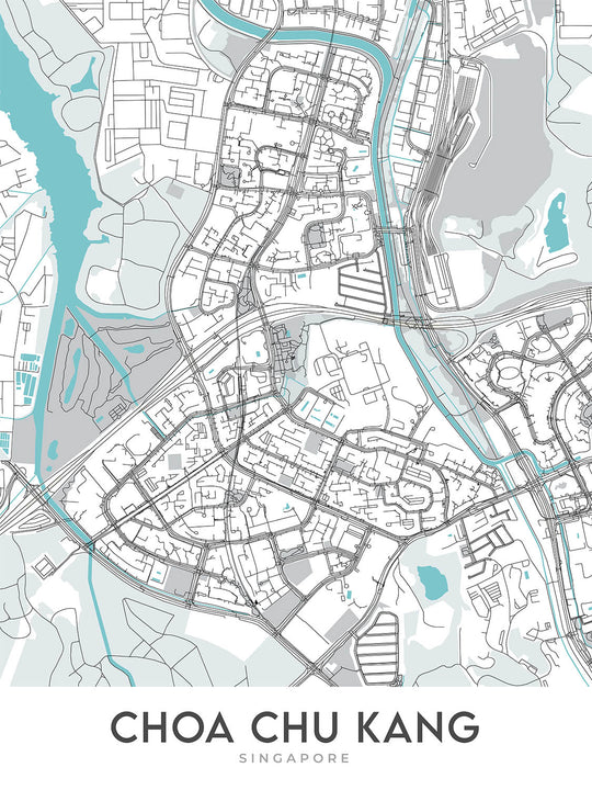 Este mapa contemporáneo, que revela la esencia de Choa Chu Kang a través del meticuloso arte de la cartografía, presenta una exploración en profundidad de uno de los vibrantes barrios de Singapur. El mapa captura el diseño detallado de las calles de Choa Chu Kang, enfocándose en su estructura urbana moderna sin el desorden de etiquetas, brindando una estética limpia y clara que atrae a los amantes de los diseños minimalistas. Este vecindario, conocido por su combinación armoniosa de vida residencial y espacios comunitarios, emerge a través del mapa como un tema fascinante de estudio y apreciación, revelando la interacción dinámica entre la vida urbana y las instalaciones centradas en la comunidad.