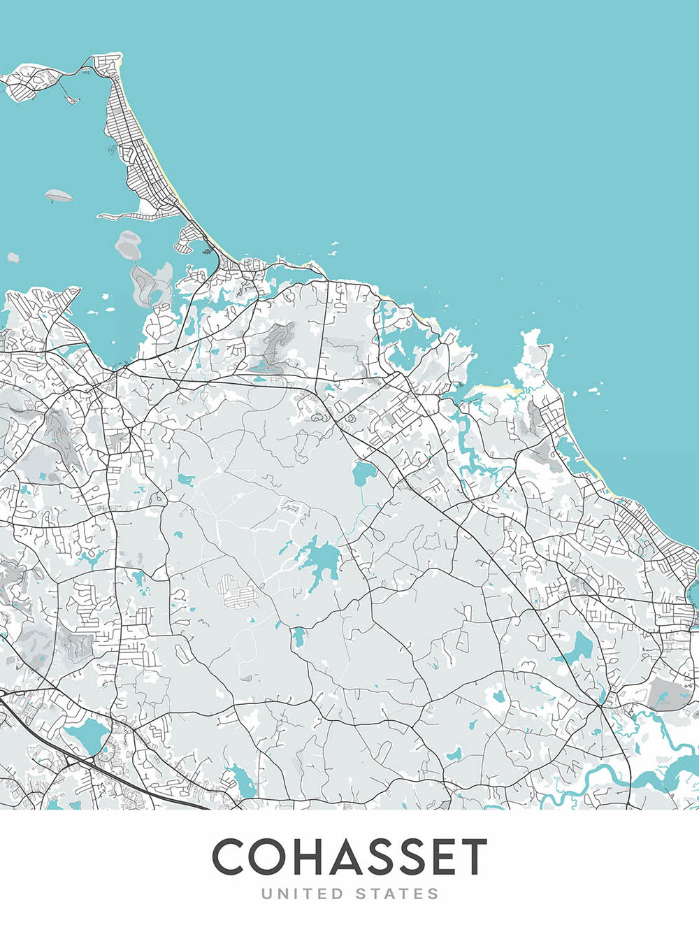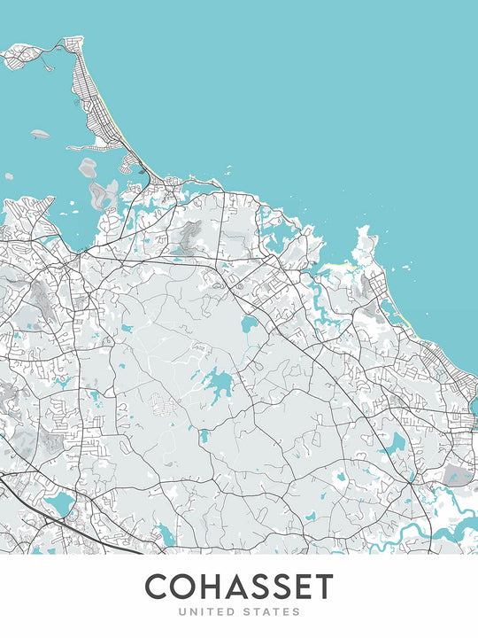 Este mapa de Cohasset, Massachusetts, es una maravilla moderna de la cartografía y el diseño. Creado por The Unique Maps Co. en 2024, este mapa es imprescindible para cualquier persona que ama el arte moderno, el diseño de interiores o la geografía. El mapa se centra en la ciudad de Cohasset y sus alrededores, proporcionando una representación intrincada y visualmente impresionante de esta hermosa región.