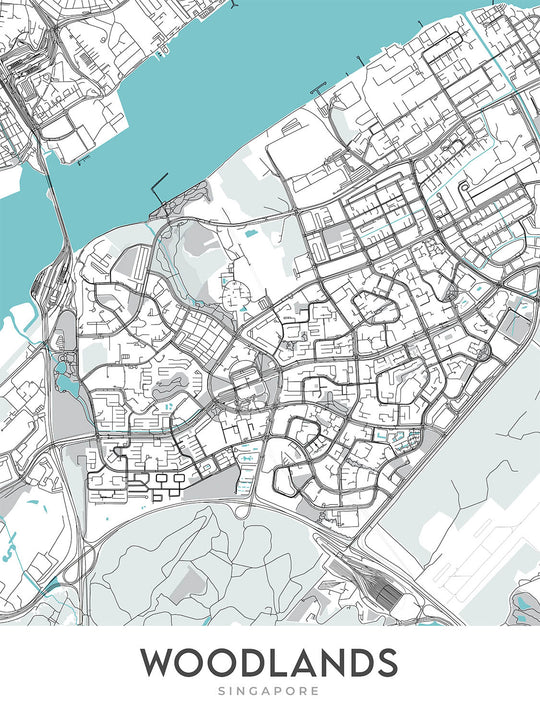 Woodlands, como se muestra en este mapa, no es sólo un vecindario sino un lienzo que muestra la armonía entre el desarrollo urbano y la belleza natural. El área es conocida por sus parques verdes como Woodlands Waterfront Park y Admiralty Park, que se resaltan sutilmente en el diseño del mapa. Estos espacios verdes brindan un soplo de aire fresco en medio de la configuración urbana, lo que refleja el compromiso del vecindario con el mantenimiento del equilibrio ecológico. El diseño del mapa atrae intuitivamente la atención del espectador hacia estas áreas, utilizando contrastes de color y conciencia espacial para enfatizar la coexistencia de la naturaleza y la urbanidad.