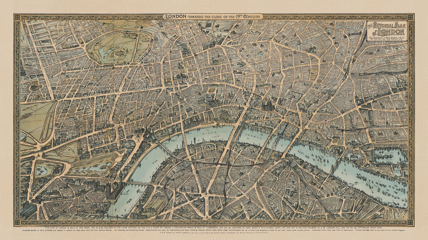 Este maravilloso mapa antiguo de Londres fue publicado originalmente en 1892. Fue creado por Charles Baker & Co.
