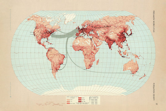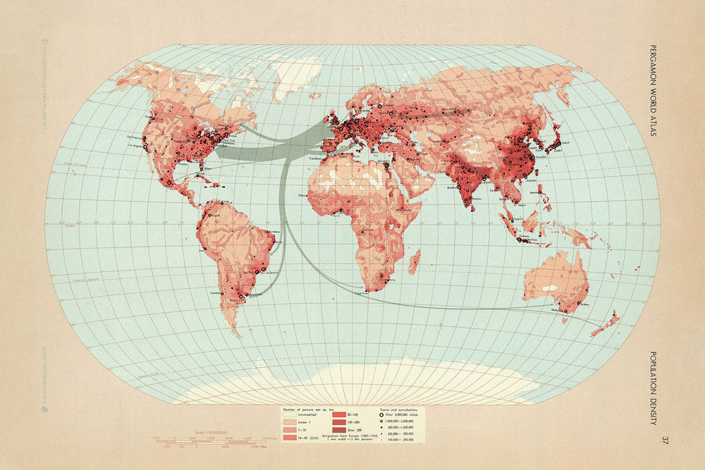 Uno de los aspectos más intrigantes de este mapa es su importancia histórica. Publicado en plena Guerra Fría, el mapa ofrece una perspectiva única de un mundo dividido no sólo por ideologías políticas, sino también por marcadas disparidades en la densidad de población. Los datos visualizados en este mapa proporcionan un recurso valioso para historiadores, geógrafos y cualquier persona interesada en comprender la dinámica sociopolítica de mediados del siglo XX. La descripción que hace el mapa de la emigración desde Europa durante este período es particularmente notable, ya que refleja los profundos cambios demográficos provocados por importantes acontecimientos históricos como las Guerras Mundiales y el inicio de la Guerra Fría.