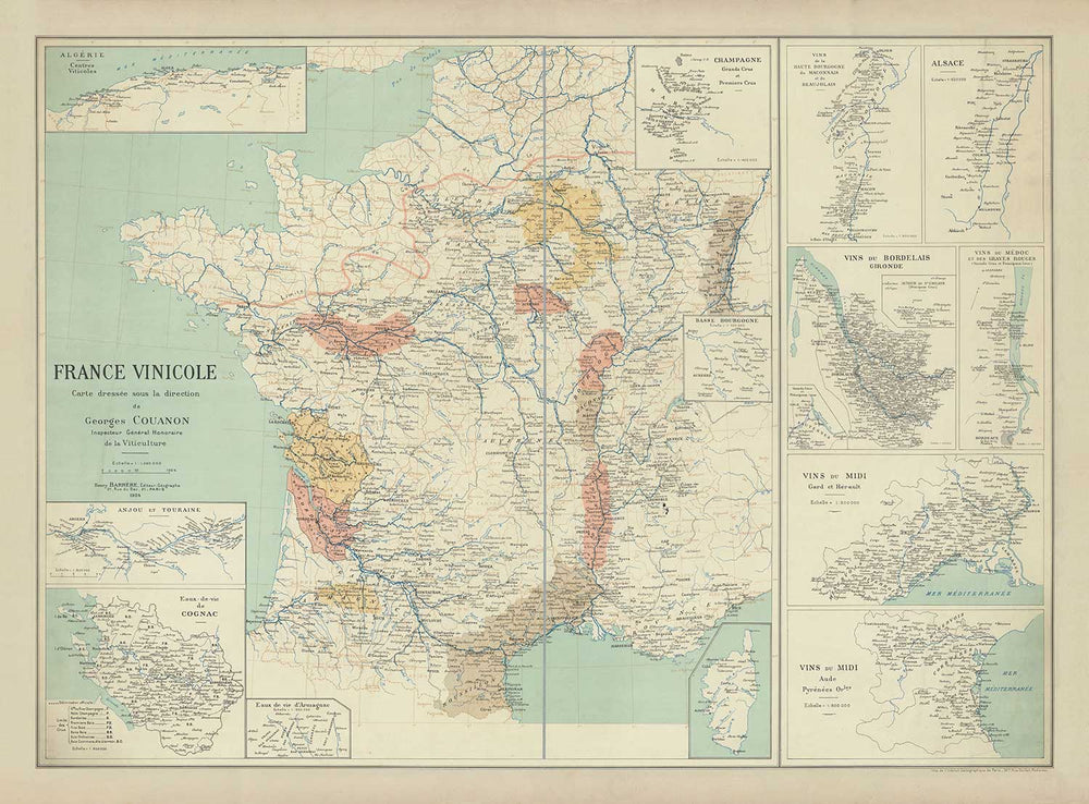 Esta maravillosa antigua mapa de Francia Vinicole (productora de vino) fue publicada originalmente en 1924. Fue creada por un cartógrafo anónimo.