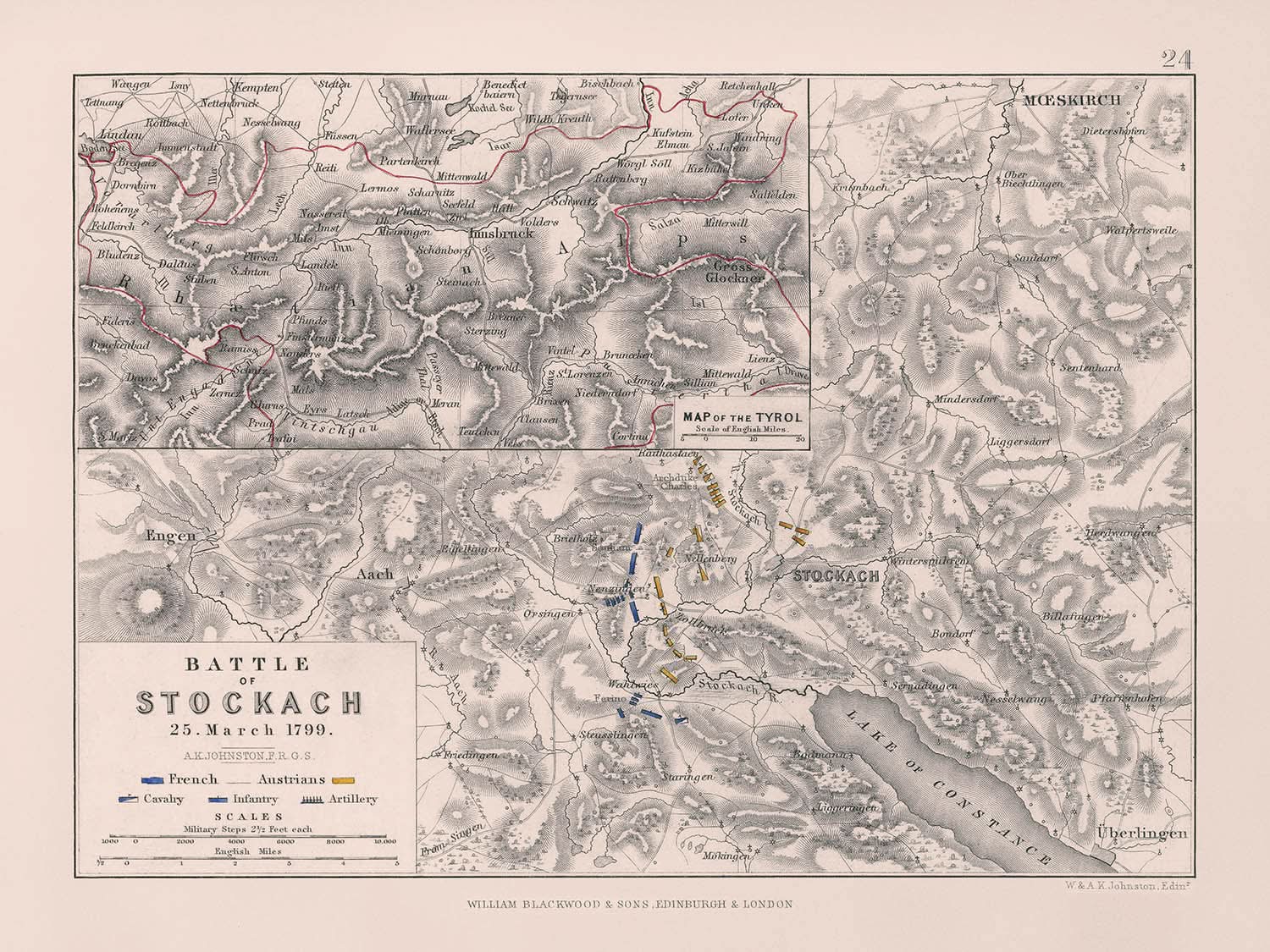 Batalla de Stockach por AK Johnston, 1799: Guerra Revolucionaria Francesa