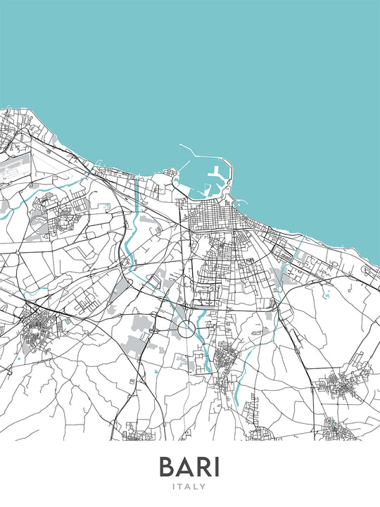 Este mapa de Bari, creado por The Unique Maps Co., es una maravilla moderna que captura la esencia de esta vibrante ciudad italiana. Centrándose en la estética y el diseño de interiores, este mapa no es sólo una herramienta de navegación, sino una obra de arte que agregará un toque de sofisticación a cualquier hogar u oficina. El mapa cubre una parte sustancial de Bari, incluido el histórico distrito de Bari Vecchia, conocido por sus calles estrechas y arquitectura antigua, así como los barrios más modernos de Carrassi y San Pasquale.