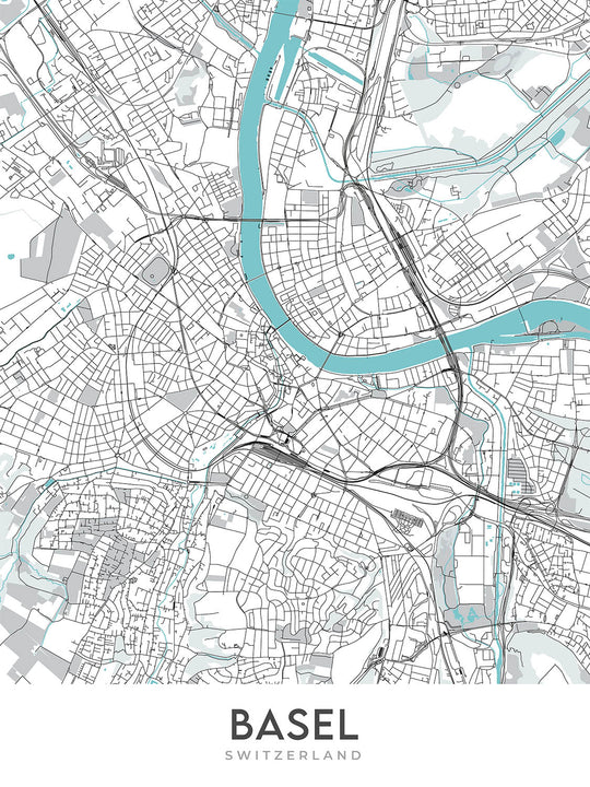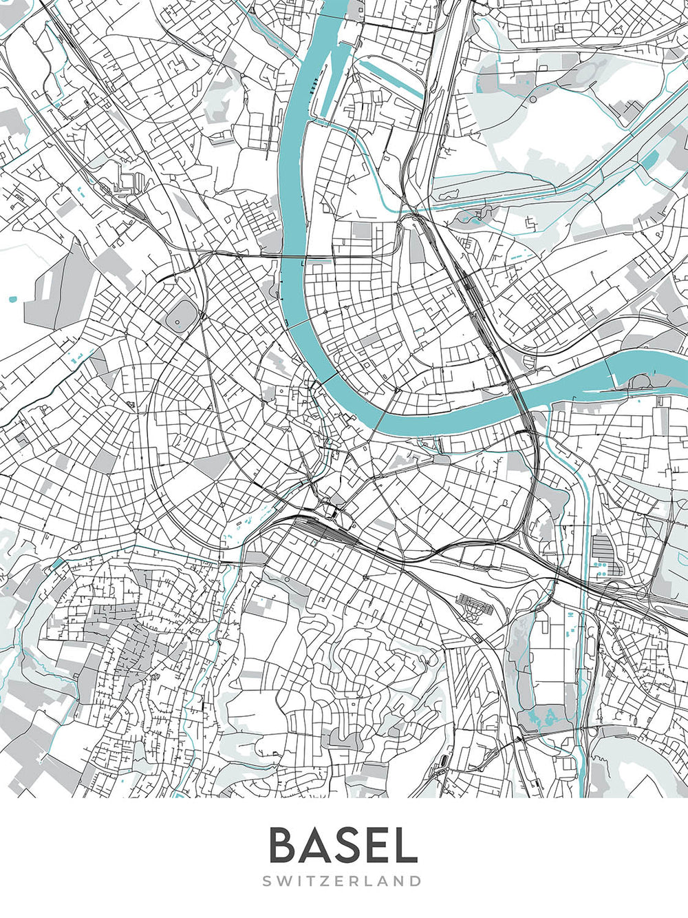 Este mapa de Basilea, Suiza, es una representación moderna y detallada de la ciudad y sus alrededores. Creado por The Unique Maps Co. en 2024, este mapa es una obra maestra visual que combina precisión geográfica con una estética impresionante. El mapa se centra en la ciudad de Basilea, con su intrincada red de calles, barrios y puntos de referencia. El mapa se extiende más allá de los límites de la ciudad para incluir el campo circundante, proporcionando un contexto más amplio para el área urbana.