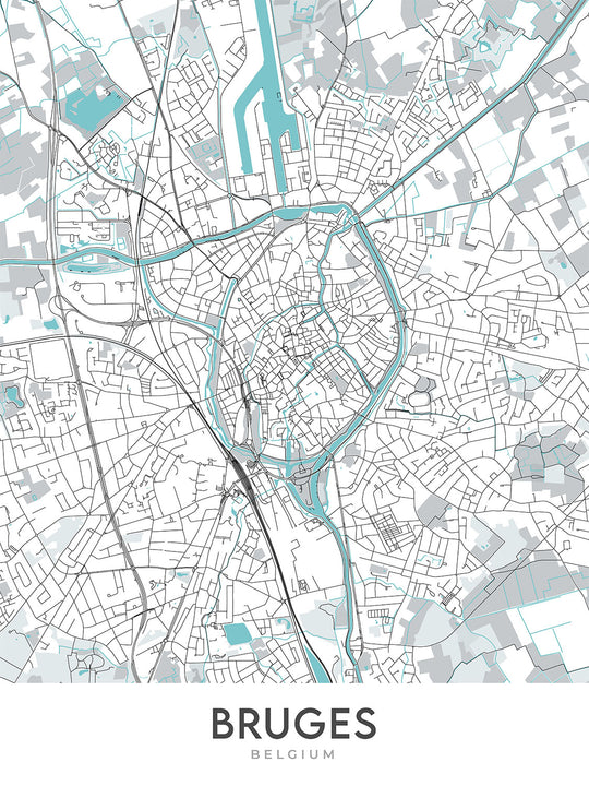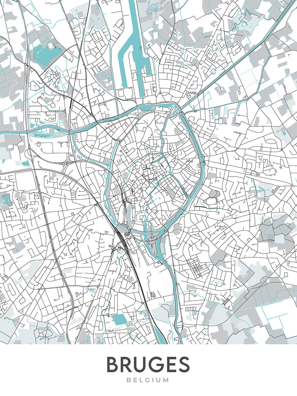 Este mapa de Brujas, Bélgica, es una maravilla de la cartografía moderna. Es un callejero detallado que se centra en el paisaje urbano moderno de la ciudad, presentando su intrincada red de calles, avenidas y bulevares. El mapa también incluye el campo circundante, proporcionando una visión completa de la ciudad y sus alrededores. El mapa es un placer para la vista, con sus colores vibrantes y detalles intrincados. Seguramente será un tema de conversación en cualquier hogar u oficina.