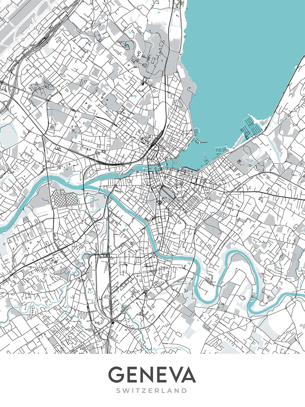 Este mapa de Ginebra es la manera perfecta de añadir un toque de estilo moderno a su hogar u oficina. También es un gran regalo para cualquiera que ame Ginebra o esté interesado en la cartografía y el diseño.