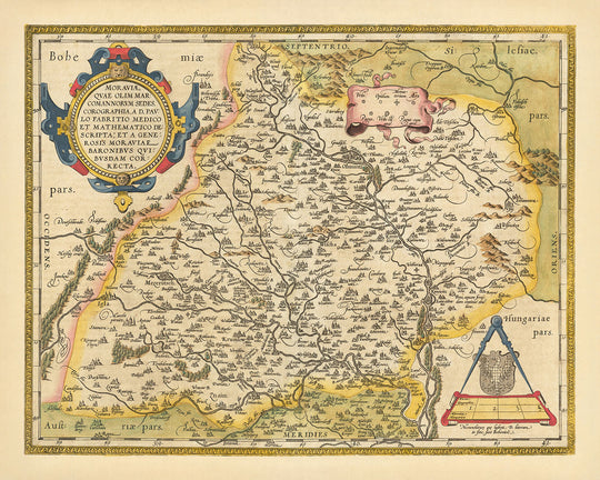 La importancia histórica de este mapa va más allá de su contenido geográfico. Como parte del "Theatrum Orbis Terrarum" de Ortelius, representa un hito importante en la historia de la cartografía, ya que marca la transición de las tradiciones cartográficas medievales a las técnicas modernas. La representación detallada y precisa de Moravia en el mapa proporciona información valiosa sobre la historia, la cultura y la geografía de la región a principios del siglo XVII. Tanto los coleccionistas como los historiadores apreciarán la belleza artística del mapa, su importancia histórica y la visión que ofrece del mundo tal como lo entendía uno de los cartógrafos más importantes de la historia.