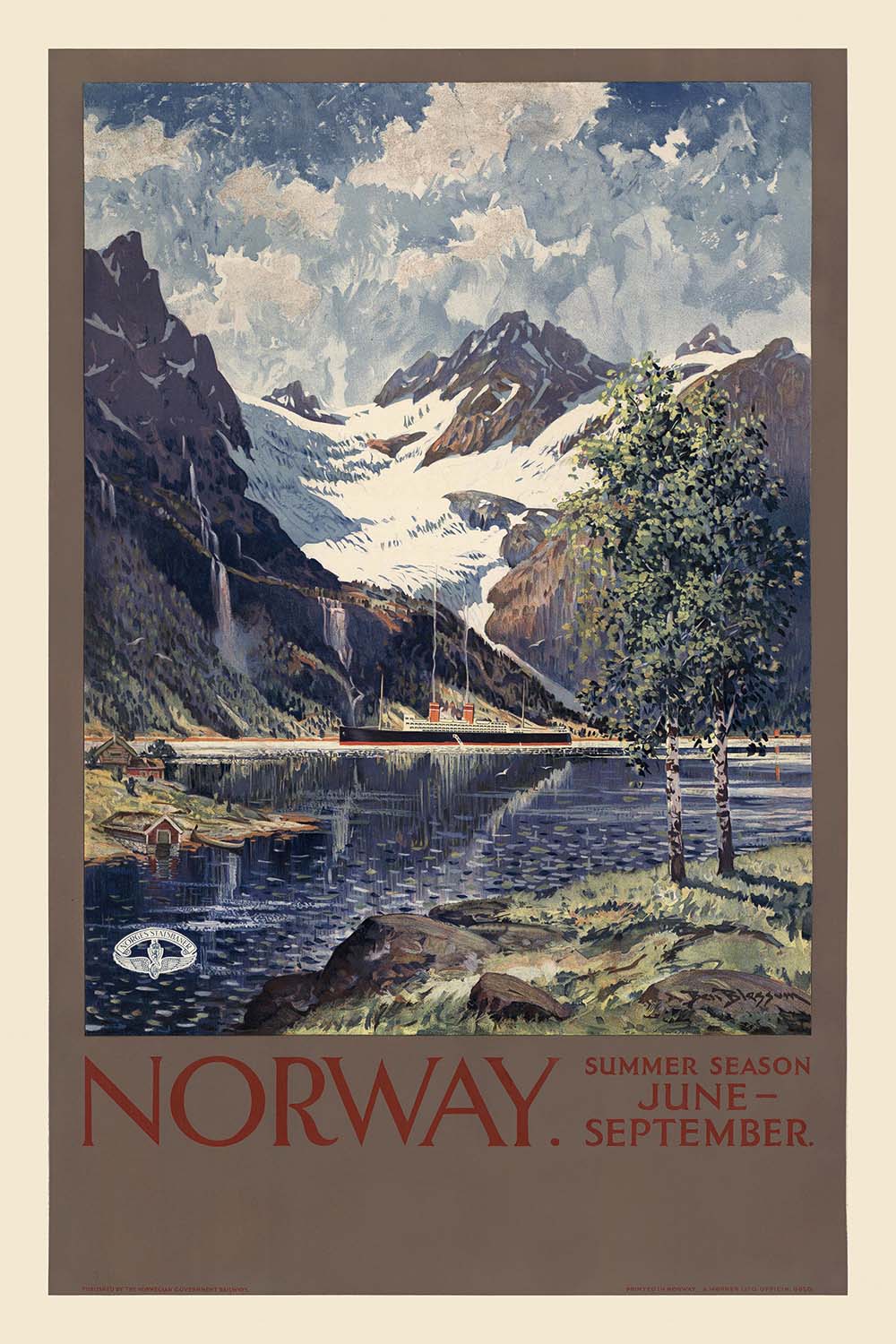 Norway Travel Poster: Summer Season June – September by Ben Blessum, 1929