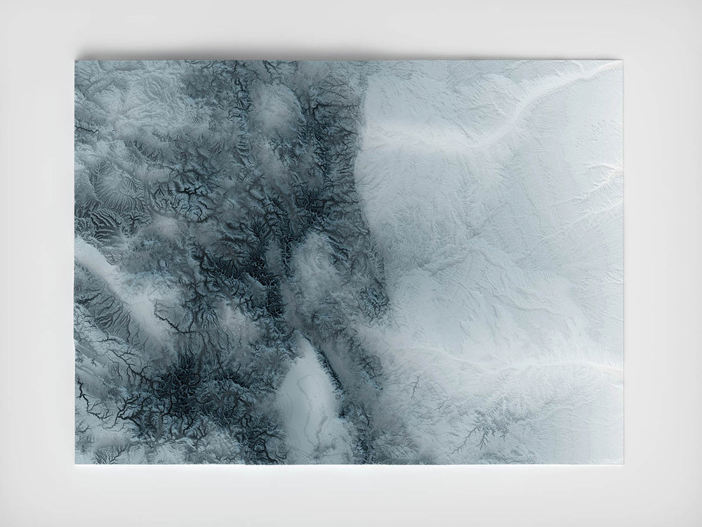 Nuestras impresiones en relieve sombreado utilizan datos topográficos de ultra alta resolución y un proceso secreto de renderizado 3D para crear la ilusión de un terreno elevado, como si las montañas estuvieran a punto de levantarse de la página. Sin etiquetas, sin bordes, sin distracciones. Solo la forma cruda de la tierra, traída a la vida en un estilo limpio y moderno.