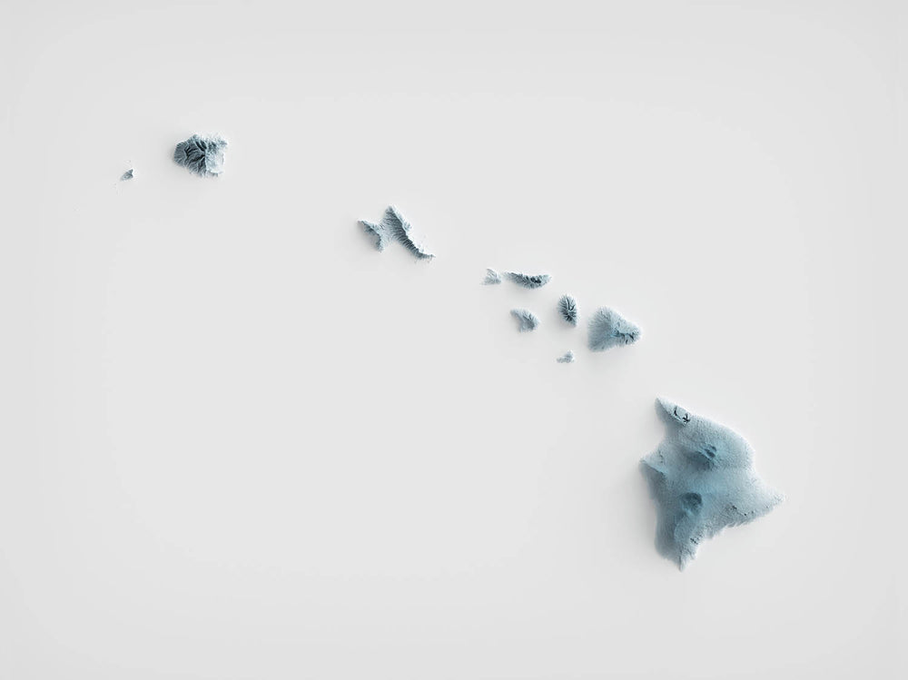 Sumérgete en el atractivo natural de Hawái con este exquisito mapa de relieve topográfico minimalista, elaborado por The Unique Maps Co. Nuestro proceso exclusivo "Unique 3D" captura la esencia de los dramáticos paisajes de Hawái, convirtiéndolos en una impresionante obra de arte.