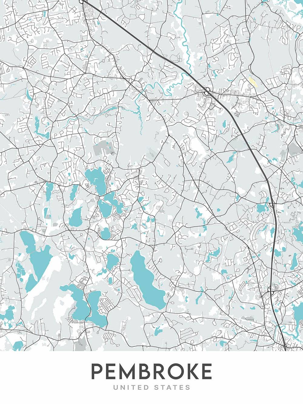 Mapa moderno de la ciudad de Pembroke, MA: Pembroke Center, Bryantville, North Pembroke, West Pembroke, Pembroke Pines