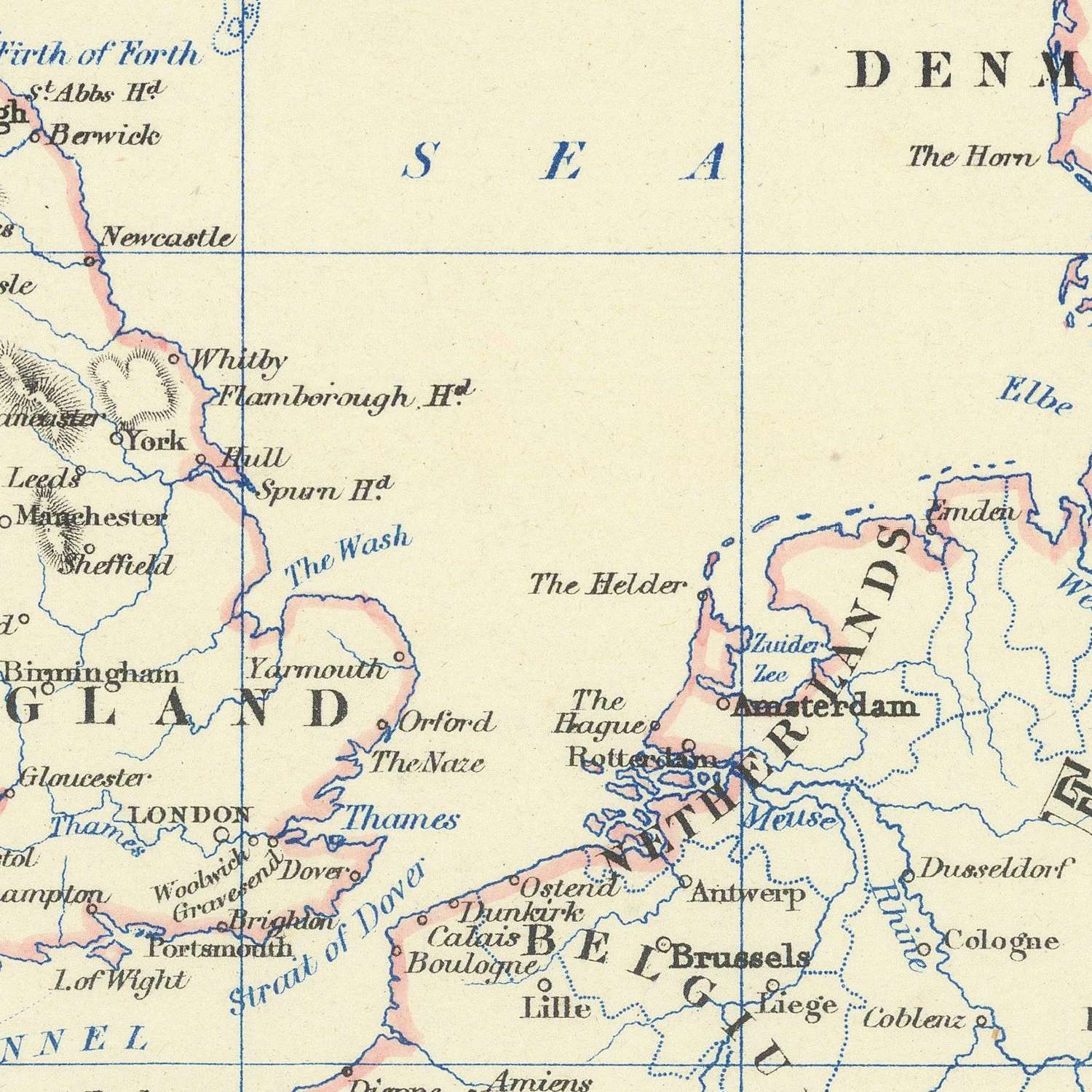 • Lines indicating maritime routes.