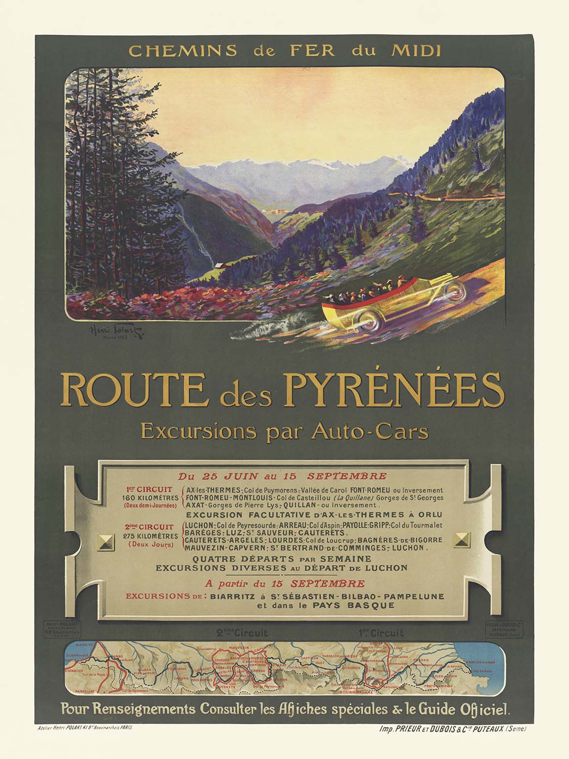 Pyrenees Travel Poster: Route des Pyrénées by Henri Polart, 1913